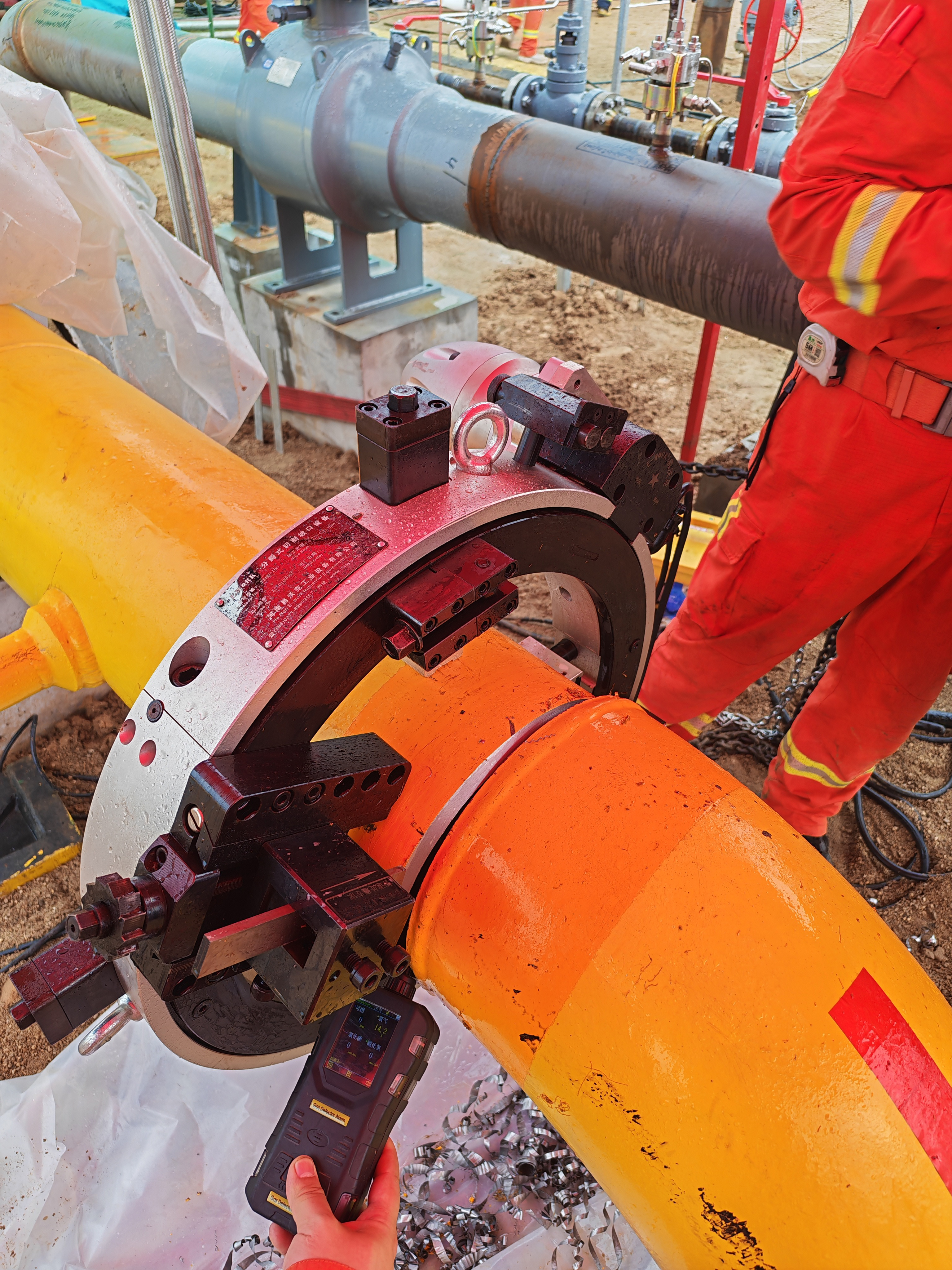 作業區域:管道冷切割切除原彎頭,拆除13米DN250管段。焊接2道彎頭焊口,并和新建分輸支路管線連接,作業點高度0.8米" />