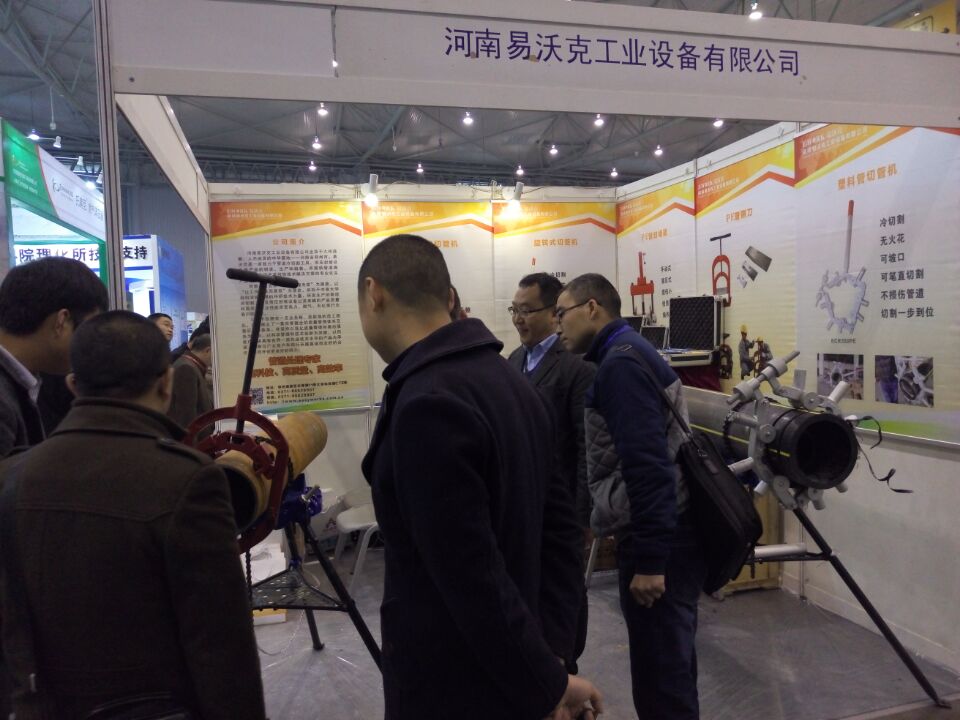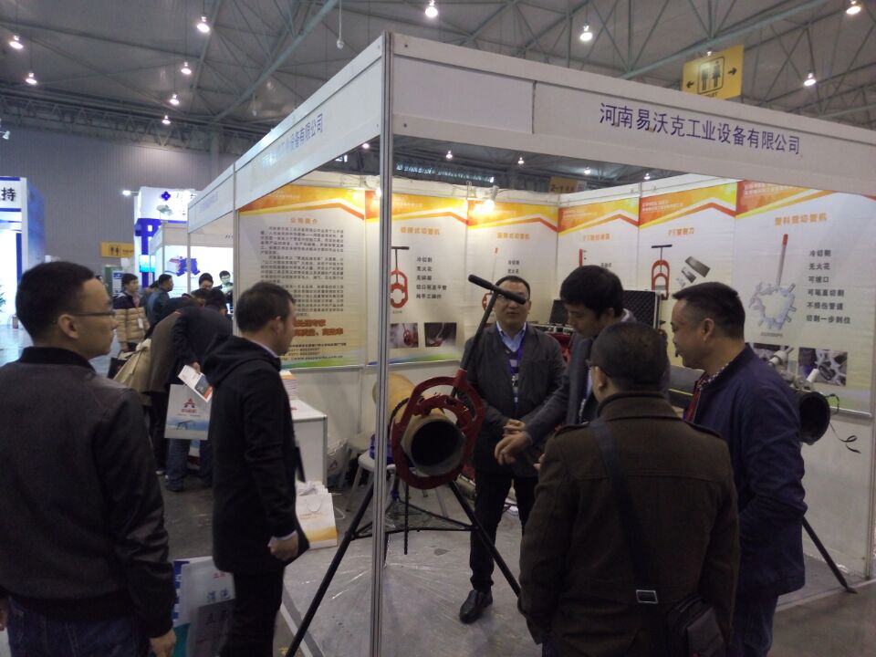 河南易沃克工業設備有限公司展位面前人頭攢動,異常火爆。對我司自主研發的管道冷切割工具喜愛有加。工作人員向在場人員講解展示鋼管和pe管冷切割工具。以及pe刮皮刀,管道帶壓封堵器。參觀人員交口稱贊。