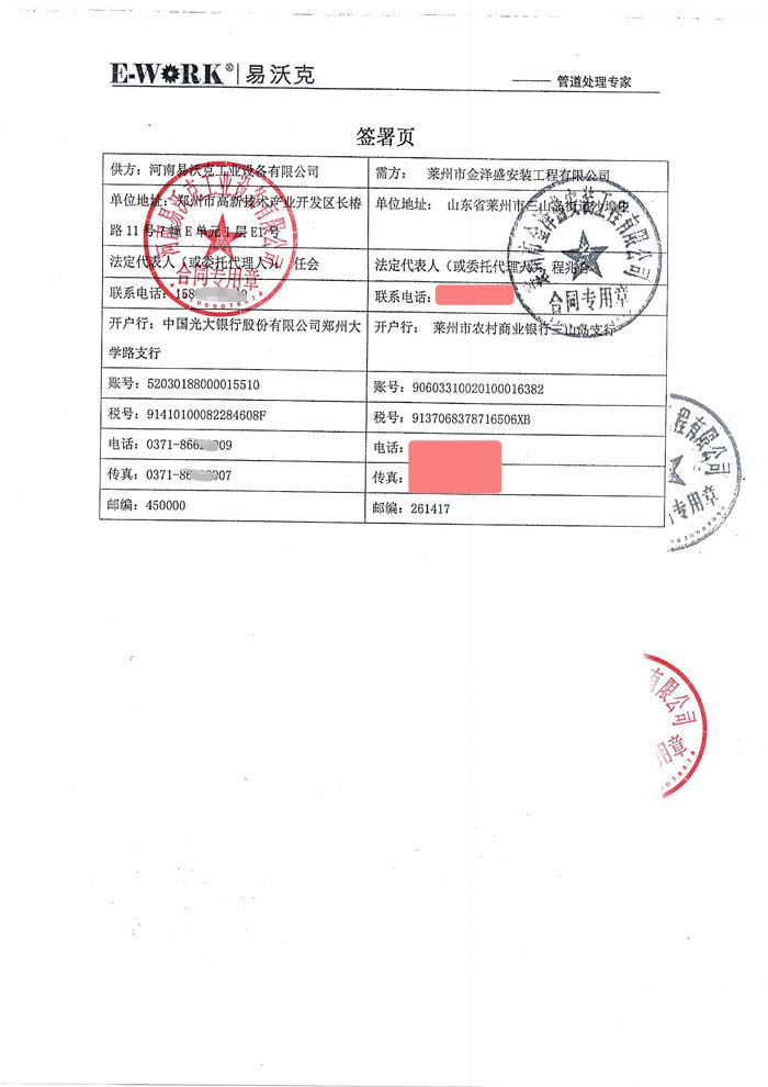 2016年萊州市金澤盛安裝工程有限公司合作業績