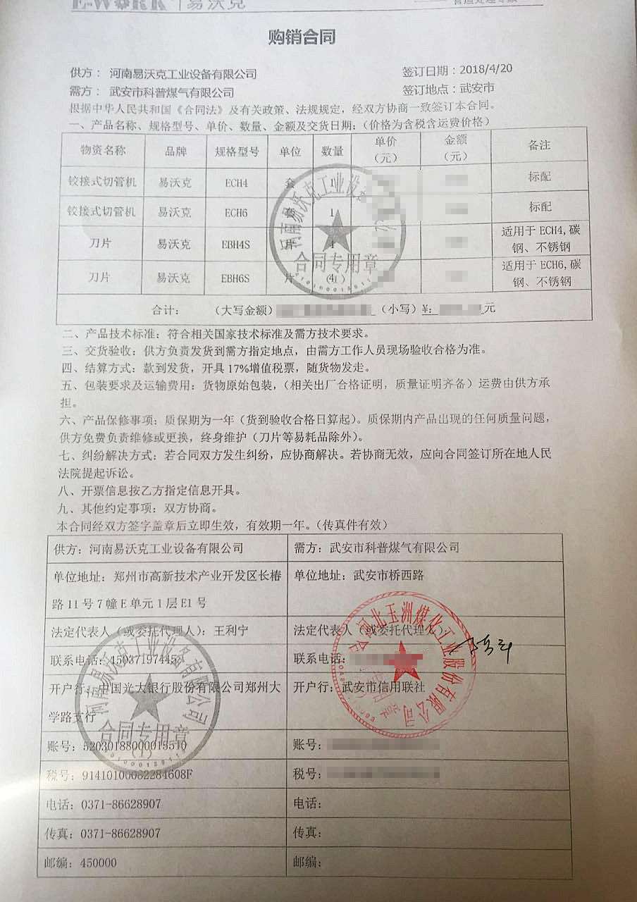 2018武安市科普煤氣公司購買我公司鉸接式切管機2套